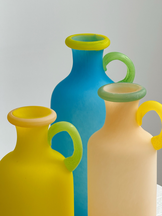 Frosted Glass Vase with Handle - Colorful Decor Bottle Style