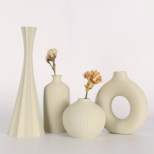 [Bohemian Vase] 4pcs Bohemian Style Vase Set | Round Plastic Vase for Dry Flower Bouquets, Home and Office Desktop Decoration, Holiday Gifts