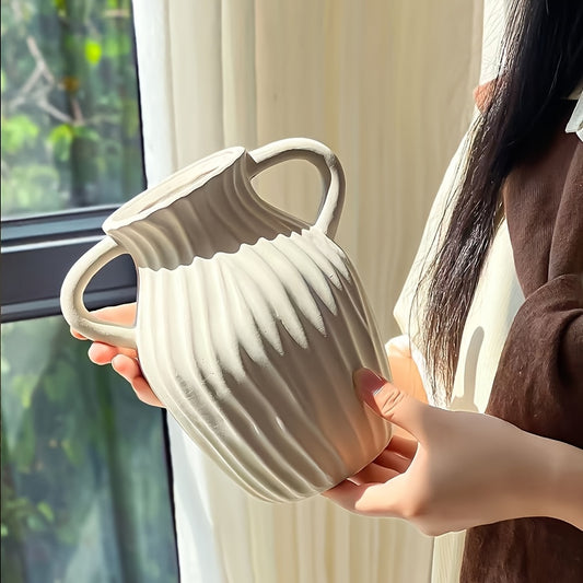 1pc Ceramic Rustic Farmhouse Vase | Decorative Cylinder Flower Vase, Height 26.5CM, Solid Geometric Pattern, Suitable for Home Decoration, Table Settings, Living Room Decor, Shelf Embellishments