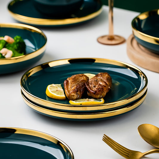 Luxury Ceramic Plate Set (3-Piece) – Pasta, Snack & Steak Serving Plates