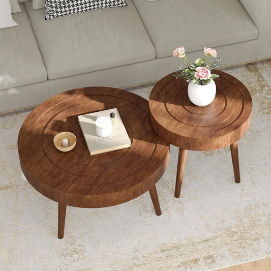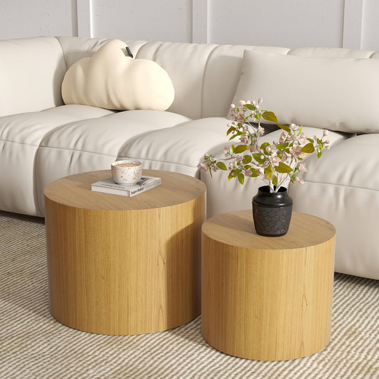 Round Wooden Nesting Coffee Table Set – 2-Piece Modern Side Tables