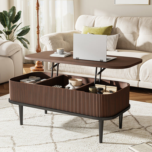 Lift-Top Coffee Table – Modern Oval Center Table with Storage (Walnut & Black)