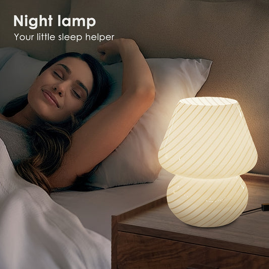 3 Color Temperature Mushroom Lamp - Small Table Bedside Lamps With Glass Striped Translucent Vintage Style - For Women - Perfect for Bedroom, Living Room, Study - Home Decor Gift