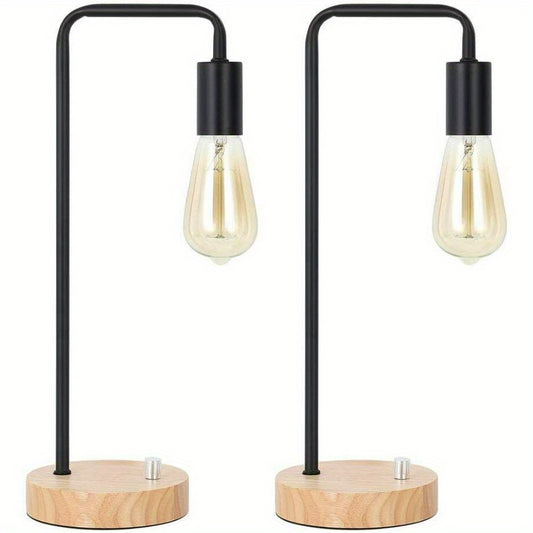 Set of 2 Edison Table Lamp, Industrial Bedside Lamps, Wood Desk Lamp Pairs for nightstand Dressers Coffee Table Study Desk in Bedroom, Guest Room