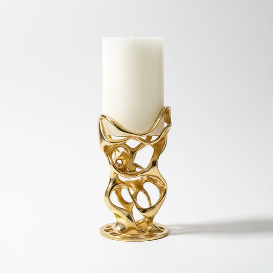 Gold Electro-Formed Sculptural Swirl Pillar Candle Holder Modern Artistic Home Accent Metal Decor