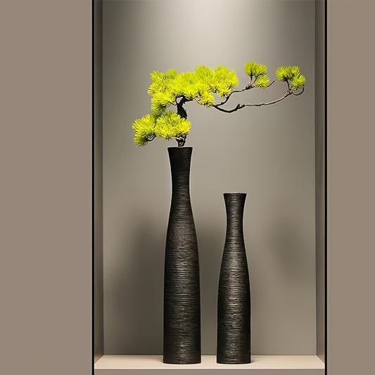 [Vintage Wabi-Sabi Vases] Vintage Wabi-Sabi Textured Plastic Vases | Black and White Cylindrical Flower Vases for Living Room Entrance Decor, Chinese Style Art Ornaments