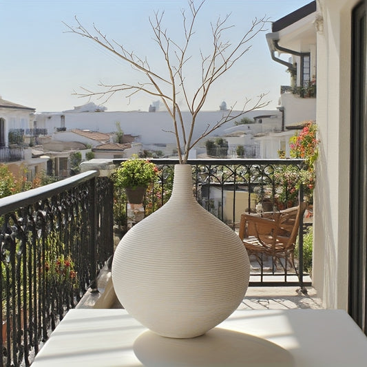 [Elegant Design Vase] White Modern Vase 1pc - Textured Body & Smooth Base, Minimalist Round Flower Vase for Fresh/Dried Flowers, Durable Plastic Home Decor for Living Room, Dining Table, Bedroom, Office, Wedding Gift & Holida