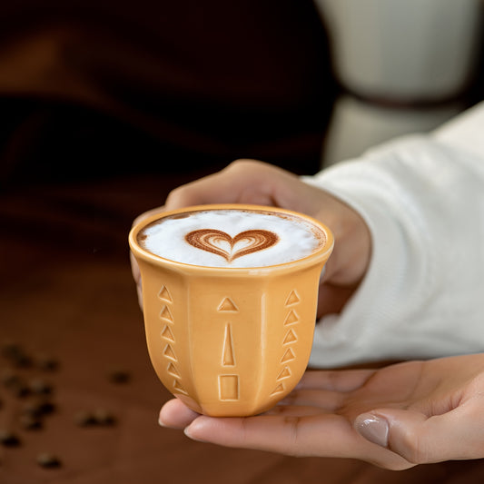 Octagonal Ceramic Mug | Arabic Style, Geometric Pattern, Reusable for Coffee, Matcha, Oatmeal, Small Breakfast, Birthday Gift, Suitable for Home, Office, or Cafe Use