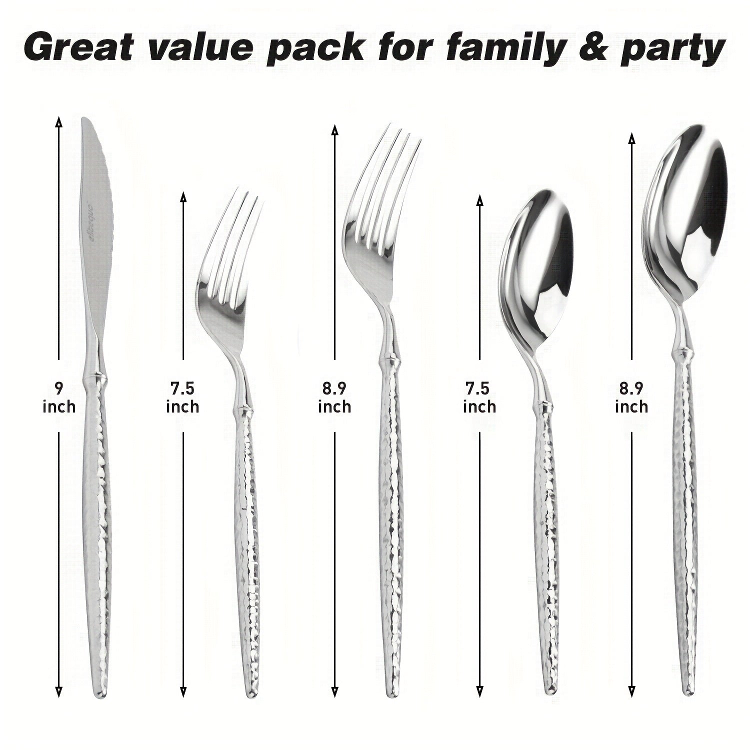 · Made from 304 stainless steel, this flatware set offers a silvery appearance suitable for various dining occasions.