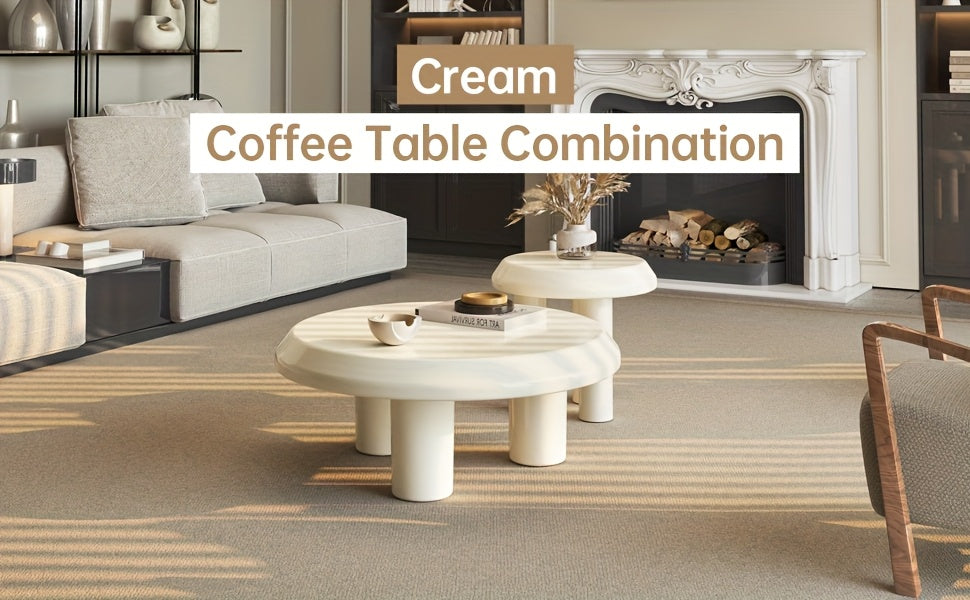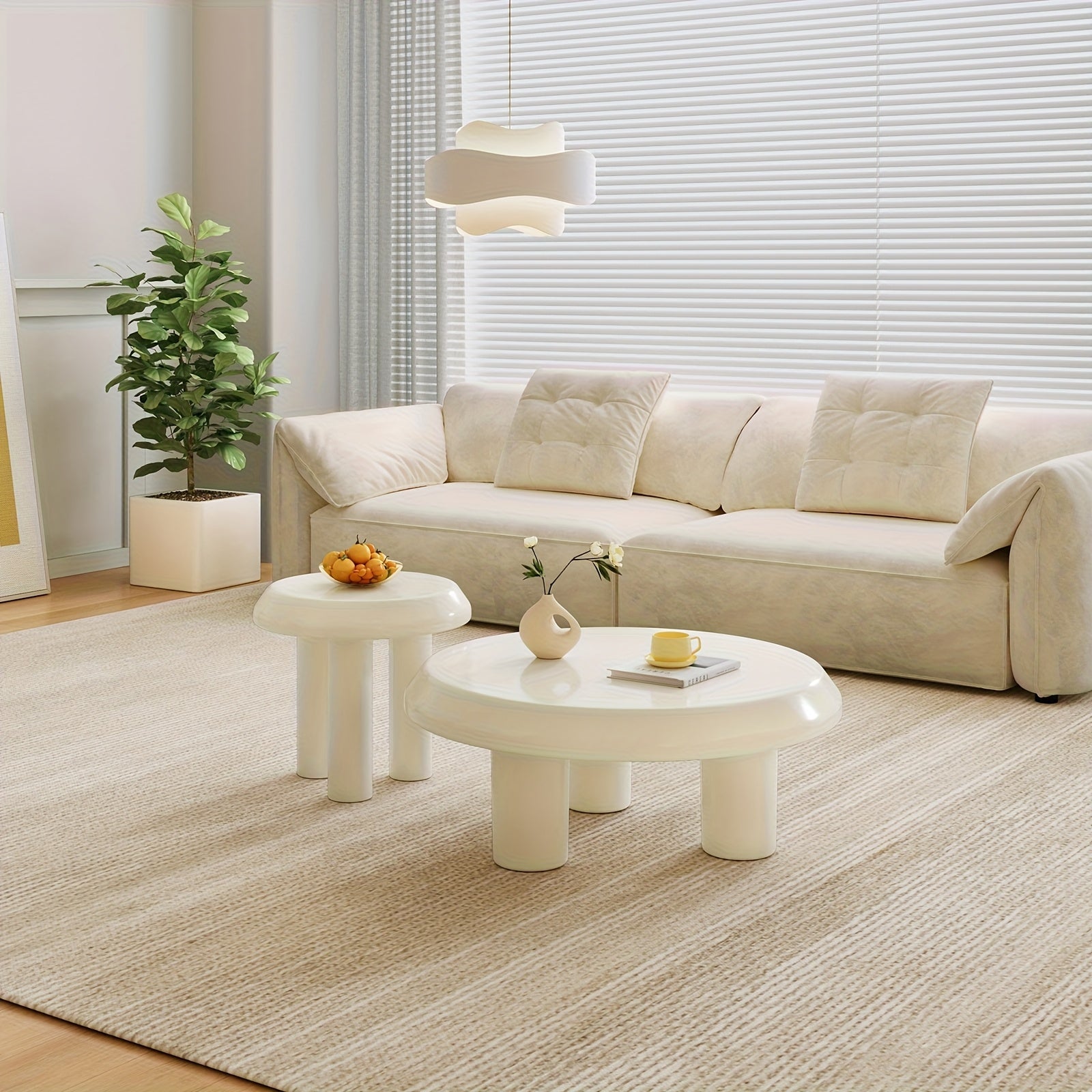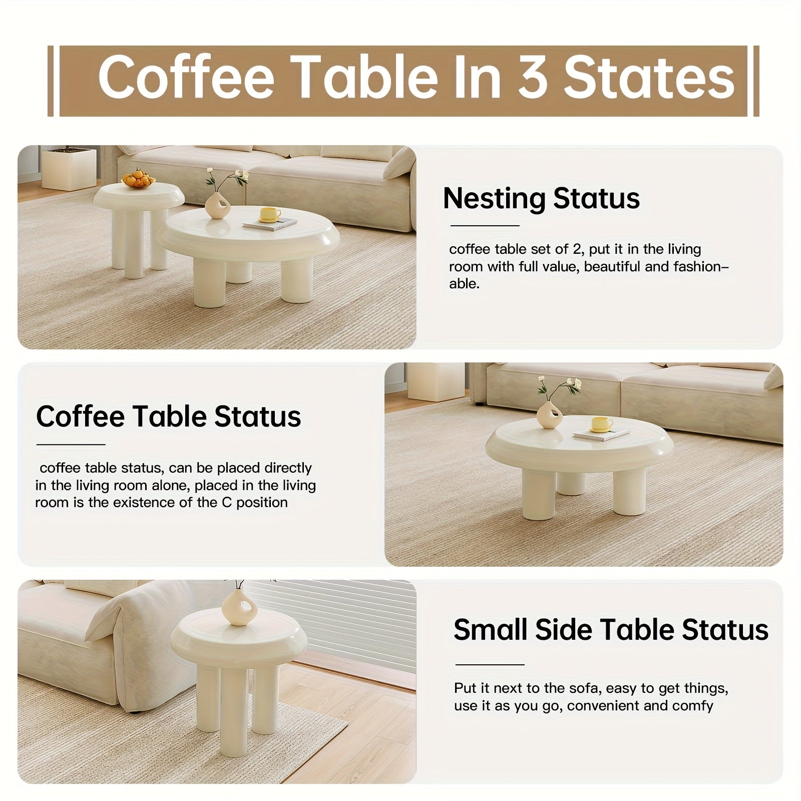 Bring a clean and calm modern look to your space with this cream white nesting coffee table set, designed for small rooms and flexible everyday living. The round shapes create a soft minimal aesthetic, while the nesting design helps you save space and adjust your layout whenever you need.