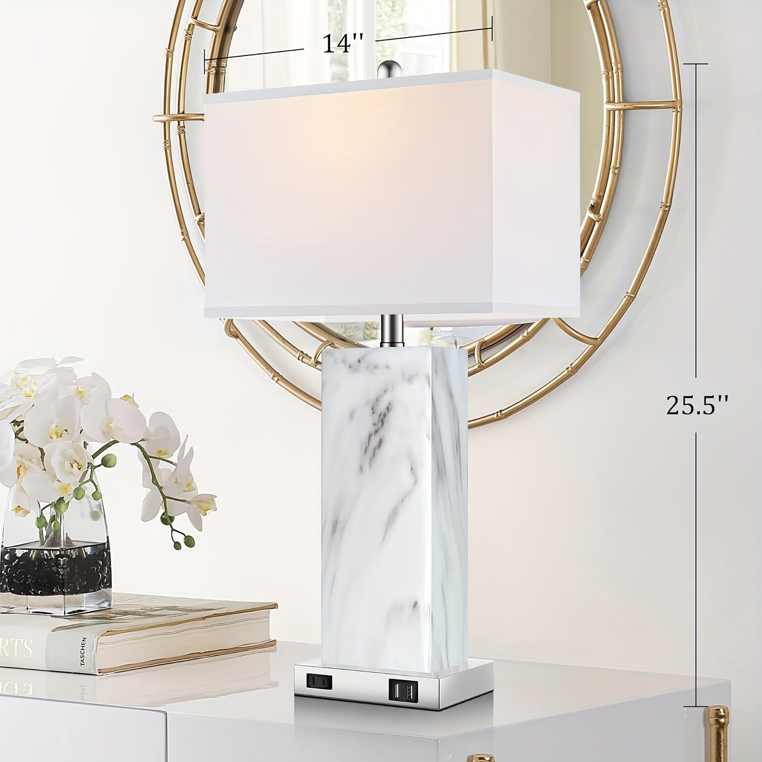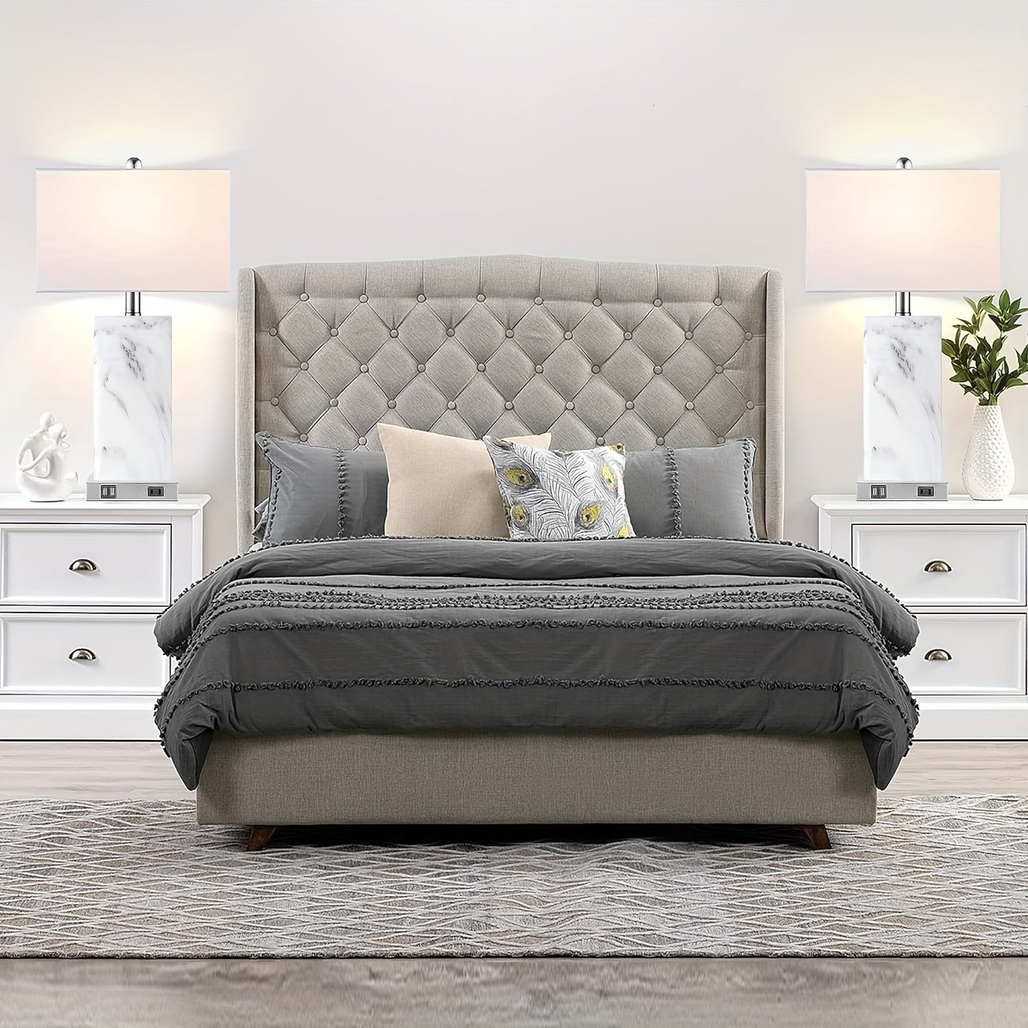 Touch Control Table Lamps Set of 2, Modern Ceramic Bedside Lamp with 2 USB Ports 1 AC Outlet, 3-Way Dimmable White Nightstand Lamp with Fabric Shade for Living Room, Bedroom (LED Bulbs Included)