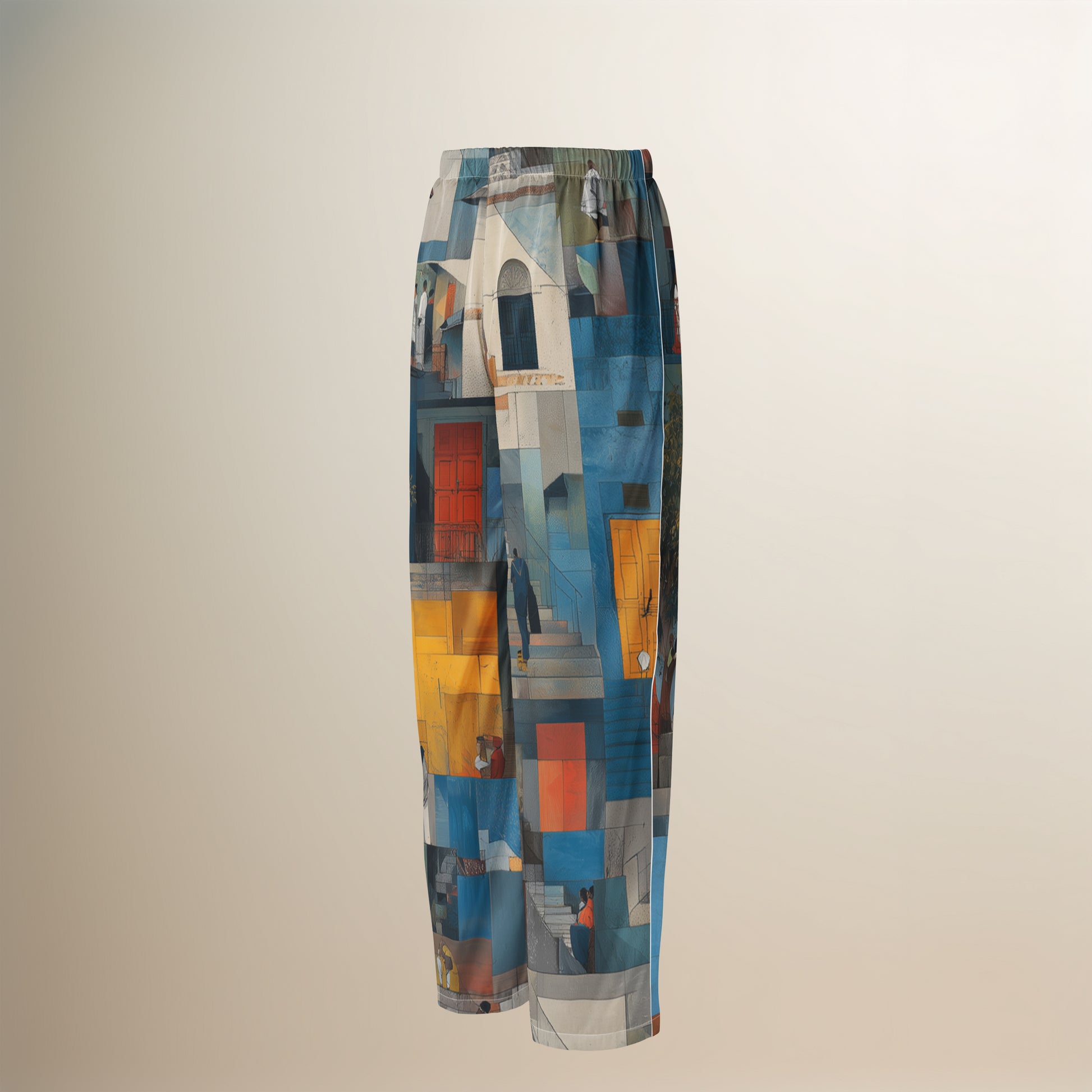 Designed for sleepwear and relaxed home environments, these pajama pants blend architectural storytelling with softness and flexibility.