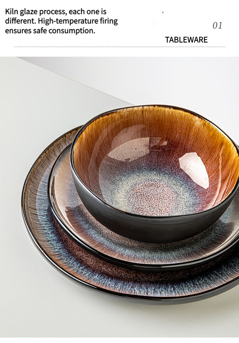 Brown Flame Glaze Ceramic Dinnerware Set (12-Piece) – Modern Plates & Bowls for 4