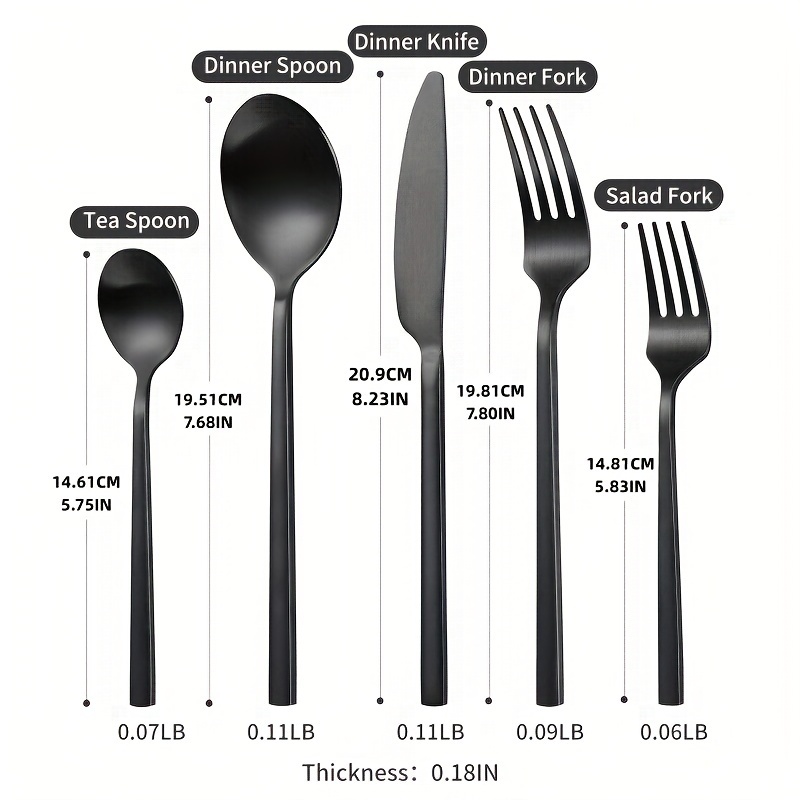 20pcs Black Luxury Rectangular Handle Cutlery Set, Durable Matte Stainless Steel Flatware Set, Dishwasher Safe, for 4, Perfect for Home, Restaurant, Hotel, Party, And Wedding Occasions, for Friends, Family, Teachers, Partners