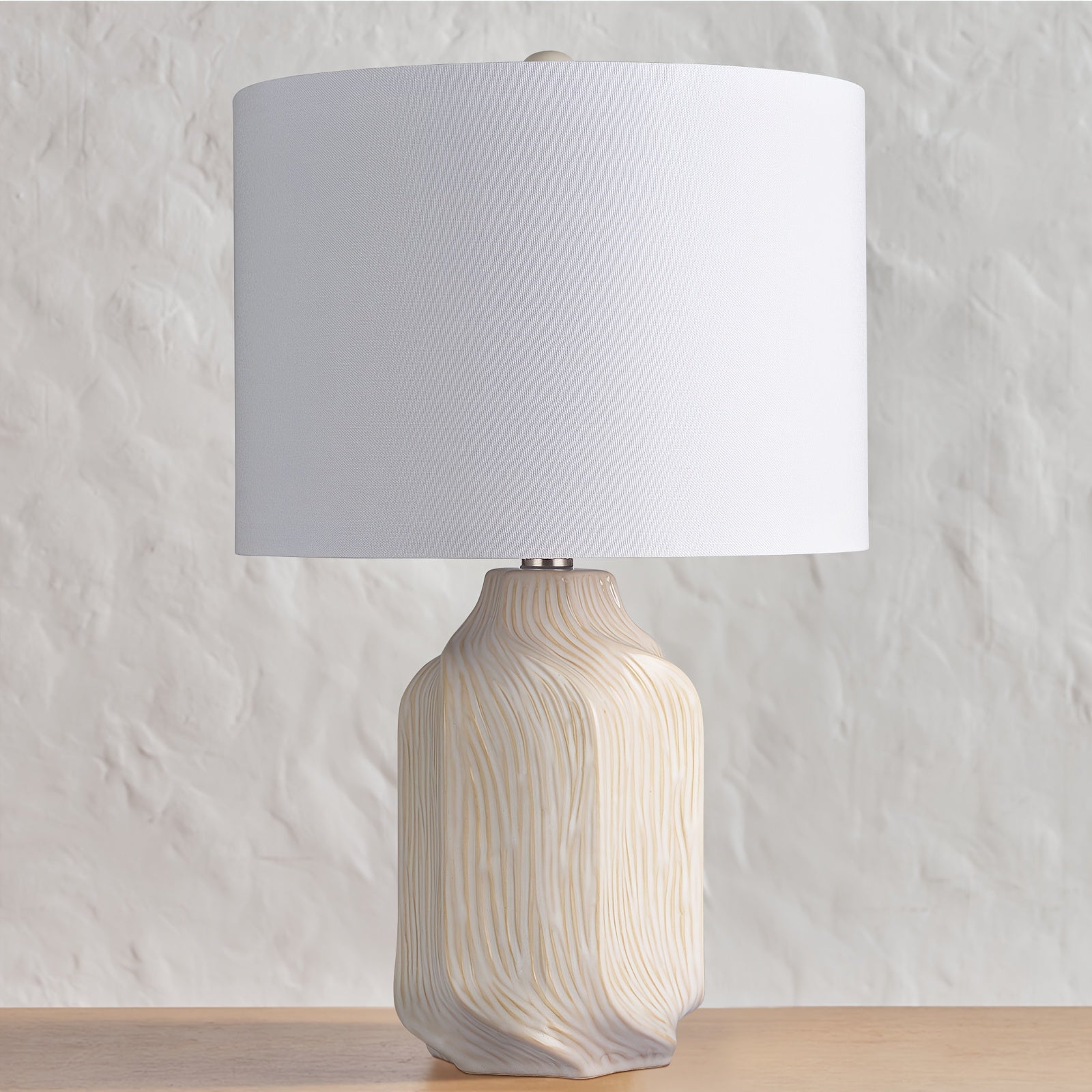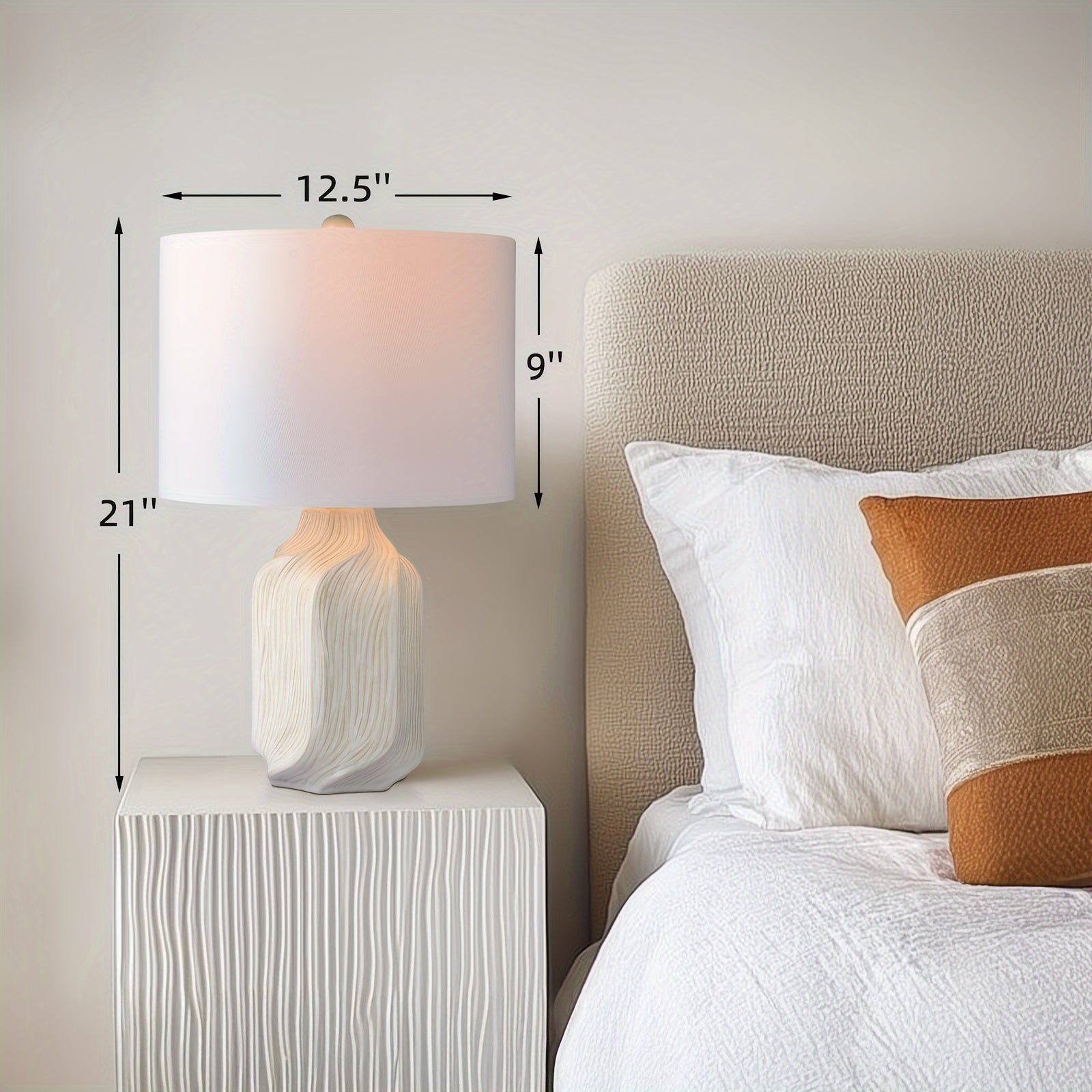 This 21'' white ceramic table lamp is a masterpiece of subtle elegance. With intricate etched lines and a sleek, glossy finish, it brings sophisticated charm to any space. The white linen shade diffuses a warm, inviting light, perfect for creating a cozy ambiance in your living room, bedroom, or entryway. Handcrafted and unique, this lamp blends seamlessly with any decor style, adding a touch of artful beauty to your home.