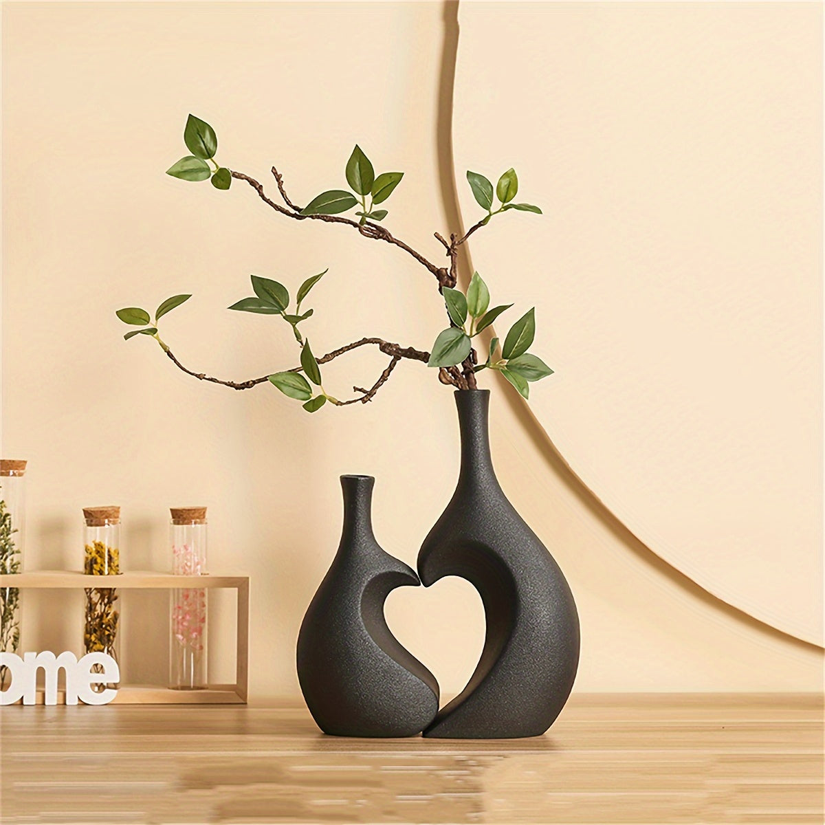 2pcs Flower Vases, Heart-shaped Connected Vases, Spring Summer Home Table Decor, Living Room Bedroom Display Cabinet Shop High-value Ornament, Gift For Relatives Friends