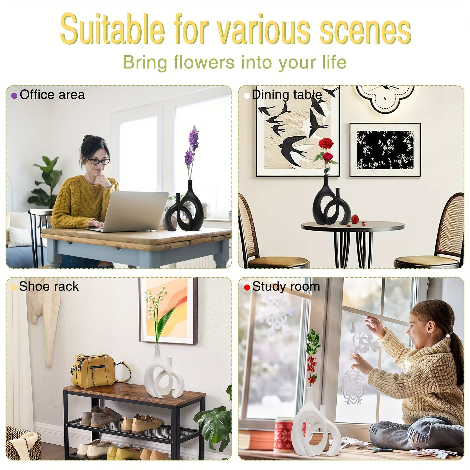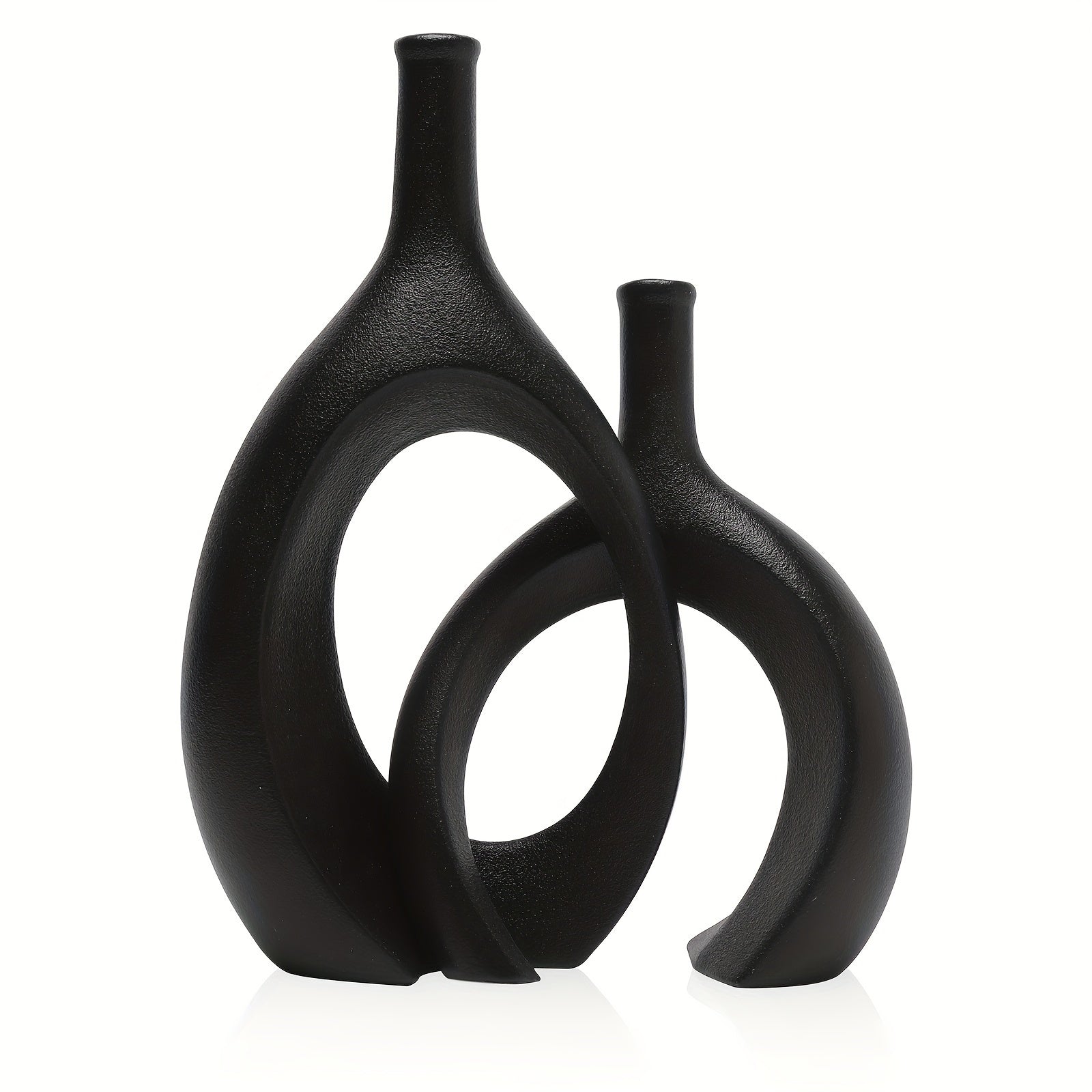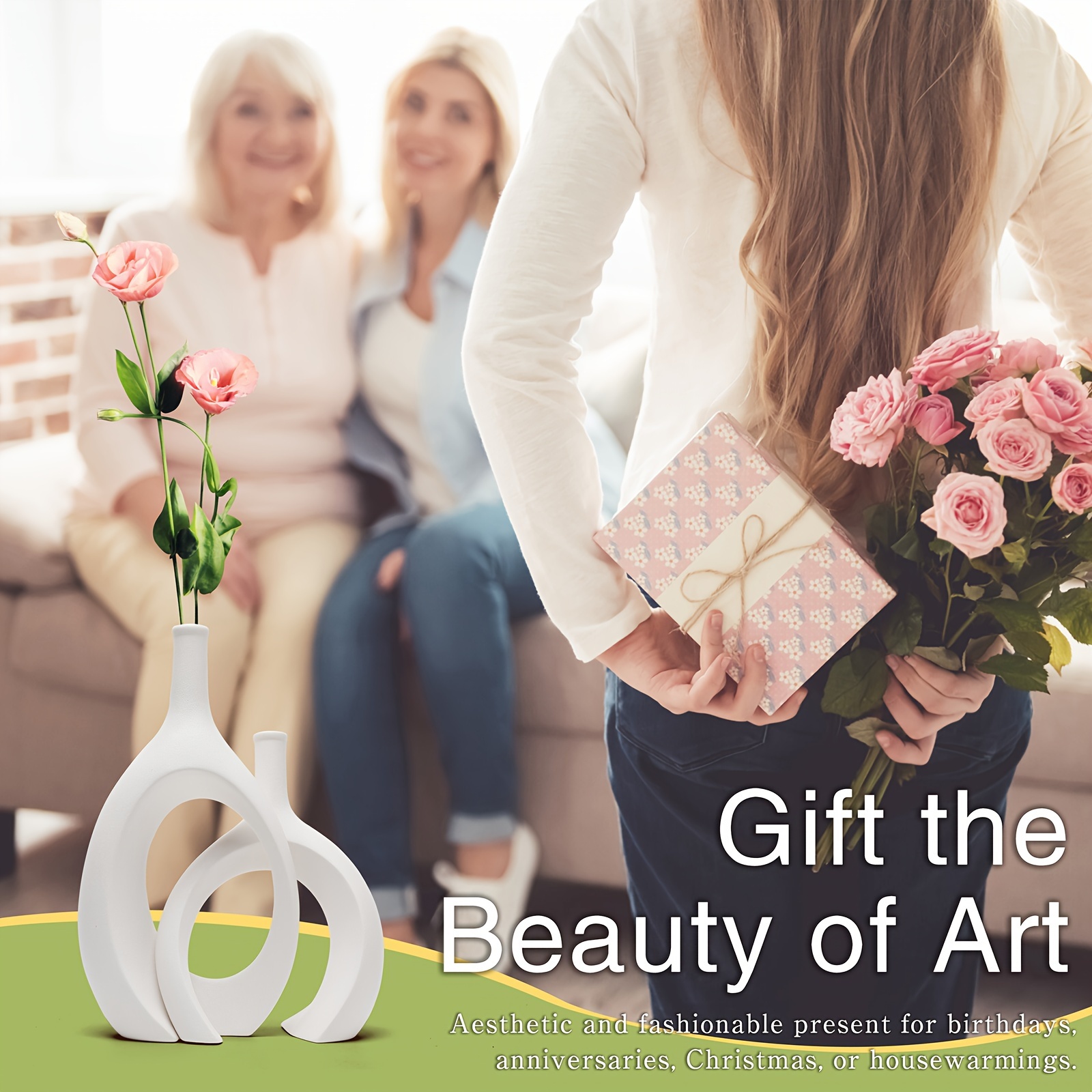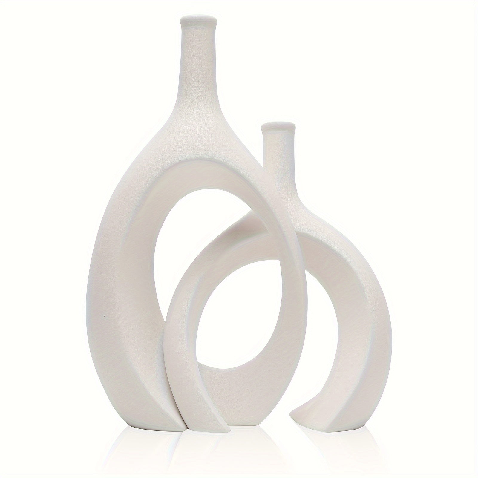 2pcs/set Ceramic Hollow Vase, Round Modern Donut Boho Aesthetic Vases for Nordic Minimalist Book Style Shelf Decor, Trendy Home Living Room Entryway Coffee Table Decorative