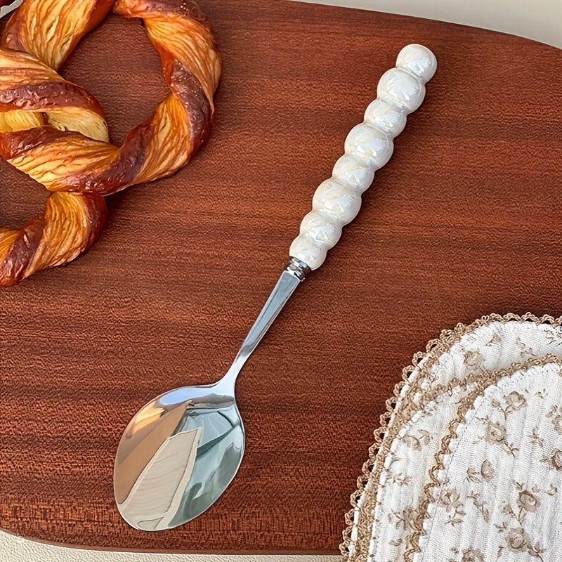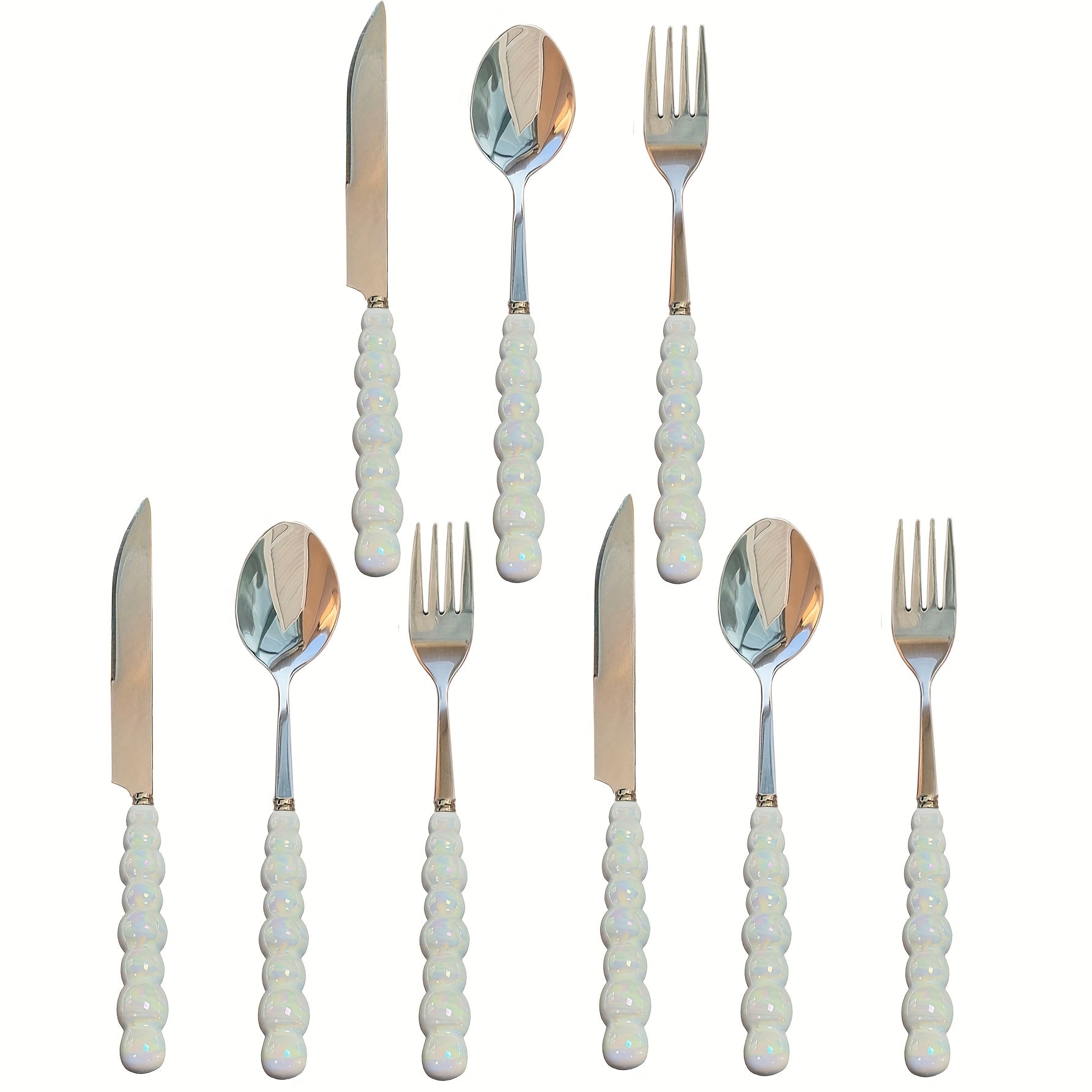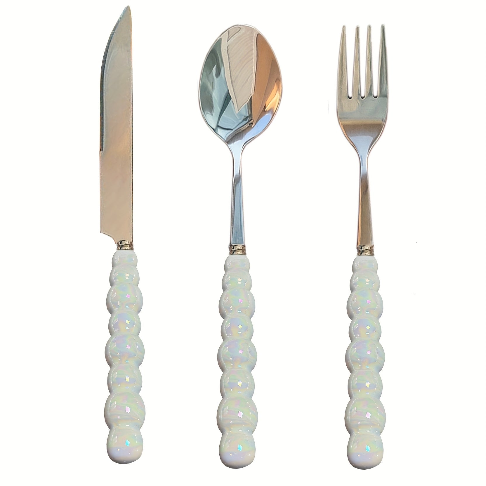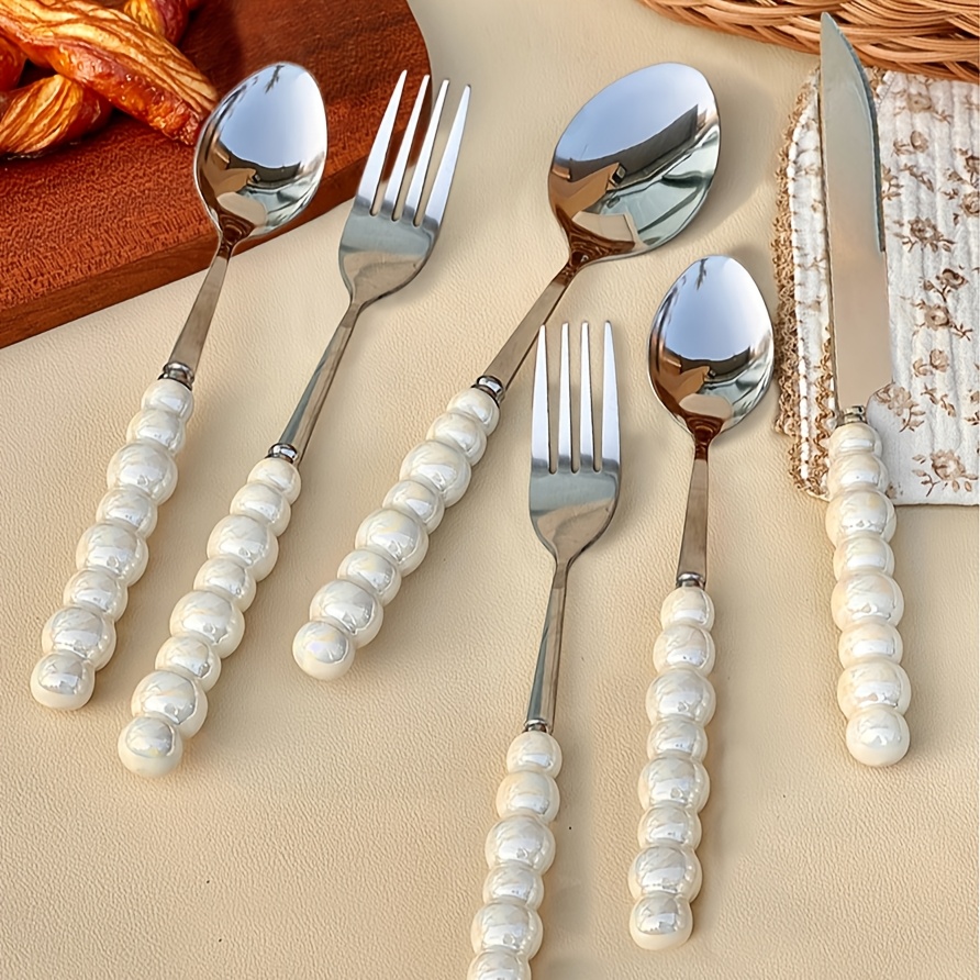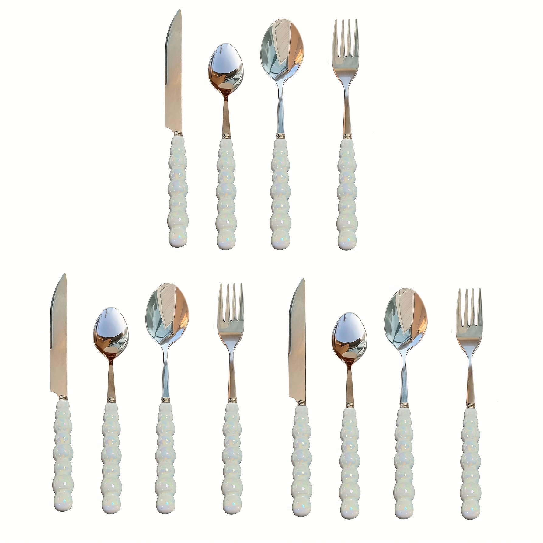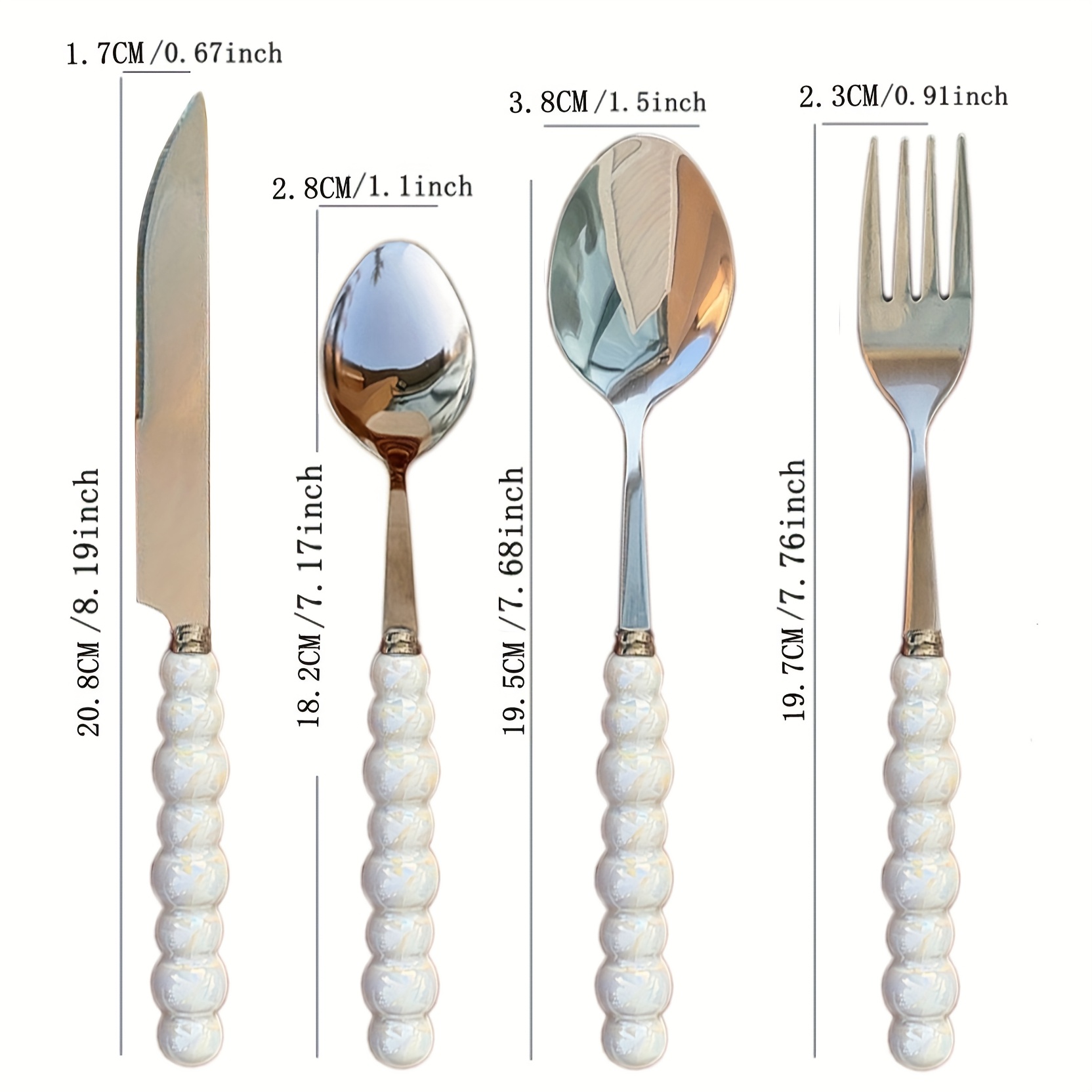 3/4/9/12 Beautiful Pearl-Shaped Stainless Steel Cutlery Sets with Ceramic Handle Table Knives, Dessert Spoons, Forks, and Spoons - Elegant Kitchen Tools and Accessories Perfect for Daily Family Dining, Birthday Parties, and H