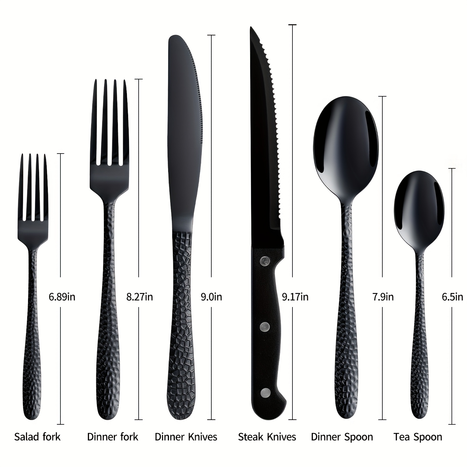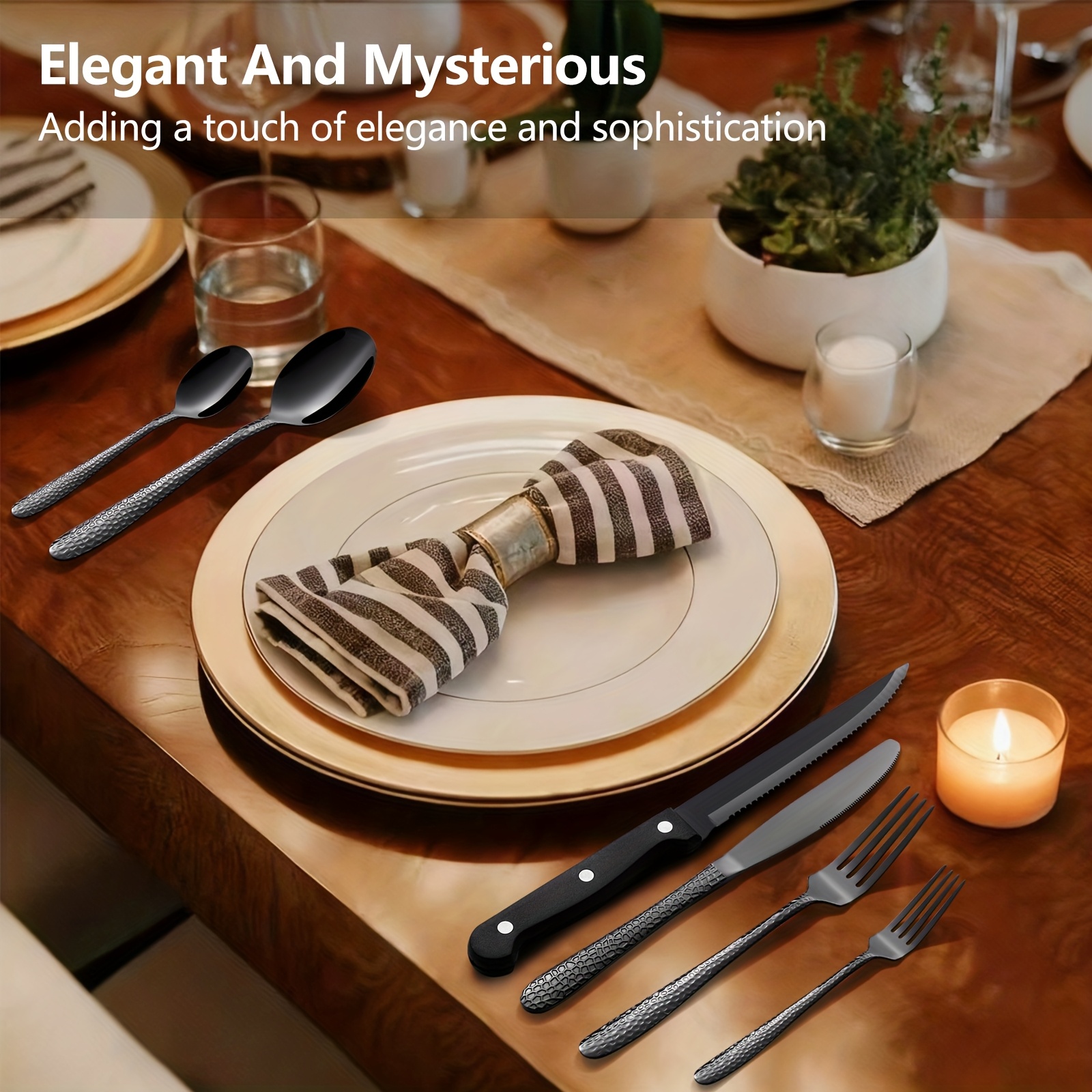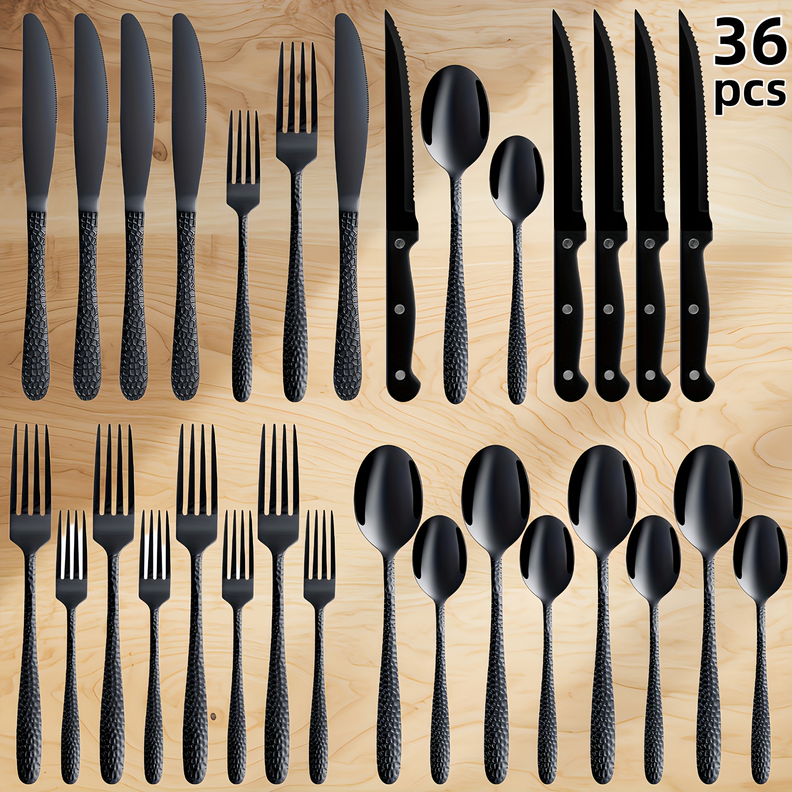 36/5pcs Of Black Tableware Set - Hammer Pattern Design - Western Utensils Knife, Fork, Spoon, Highly Recommended For Use In Restaurants, Banquets, And Weddings - Suitable For Families Of 5-10 People, Dishwasher Safe, Hallowee