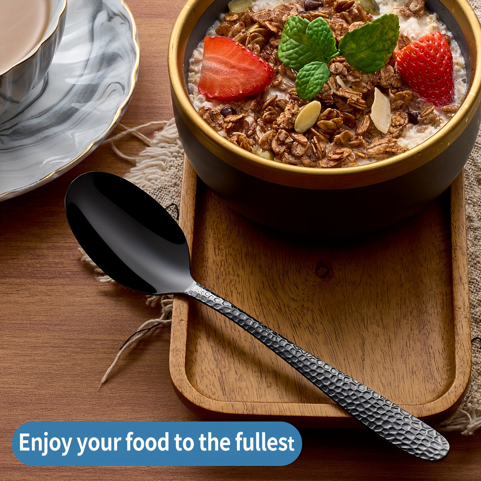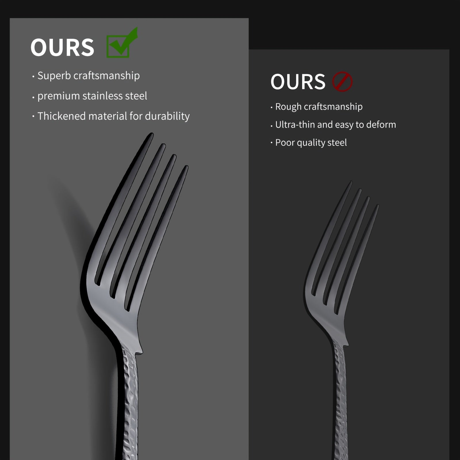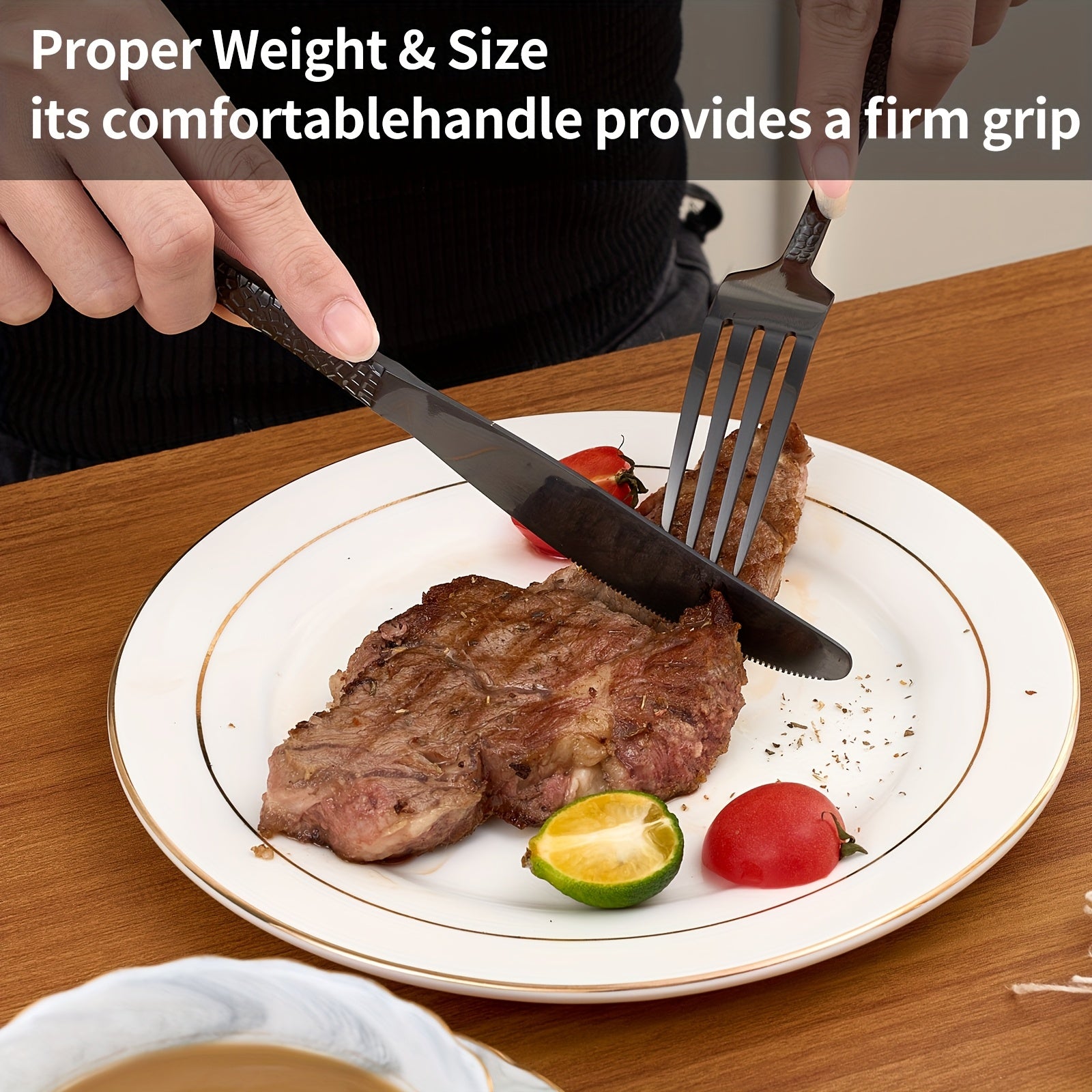 36/5pcs Of Black Tableware Set - Hammer Pattern Design - Western Utensils Knife, Fork, Spoon, Highly Recommended For Use In Restaurants, Banquets, And Weddings - Suitable For Families Of 5-10 People, Dishwasher Safe, Hallowee