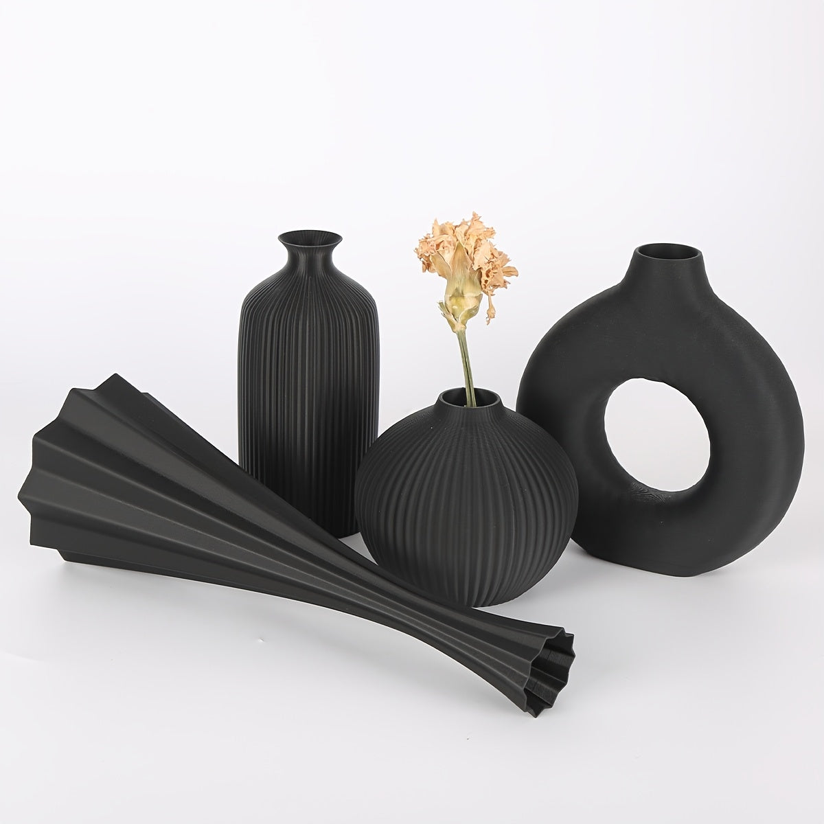 [Bohemian Vase] 4pcs Bohemian Style Vase Set | Round Plastic Vase for Dry Flower Bouquets, Home and Office Desktop Decoration, Holiday Gifts
