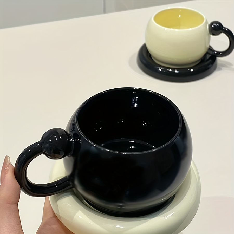 [Ceramic Mug Set] 2-Pack Black and White Ceramic Coffee Mug and Saucer Set | 6 oz Modern Minimalist Design, Durable Dishwasher Safe, Perfect for Home Kitchen, Cafe Use, Afternoon Tea, and Elegant Photo Props - FARIDABIO