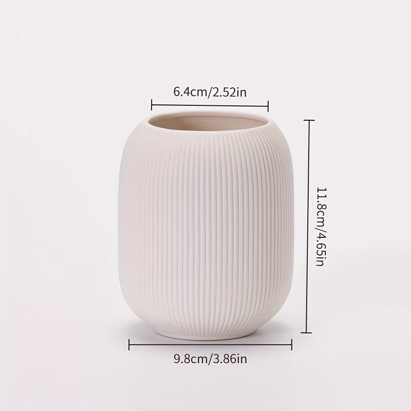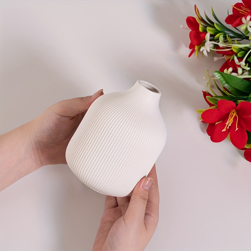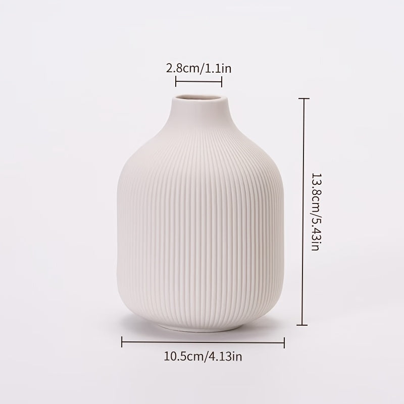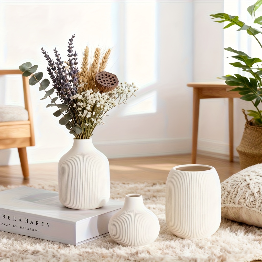 [Ceramic Vase Set] Ceramic Vase Simple European Style White Striped Unglazed Dry Flower Vase Home Decor Craft Ornament Vase Set