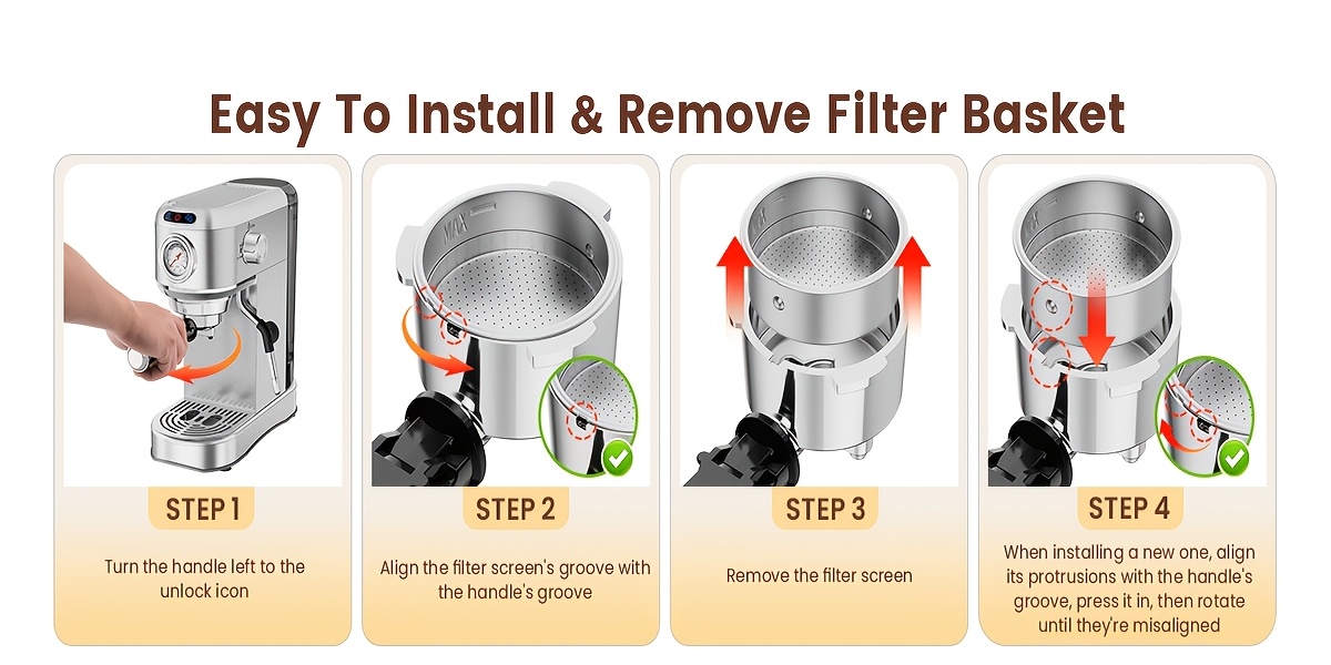 Coffee Machine, 20 Bar Espresso Machine with Milk Frother, Professional Compact EspressoMaker with Steam Milk Frother, Stainless Steel Coffee Machine with 34oz Removable WaterTank, for Cappuccino, Latte, Gift for Women Or Men