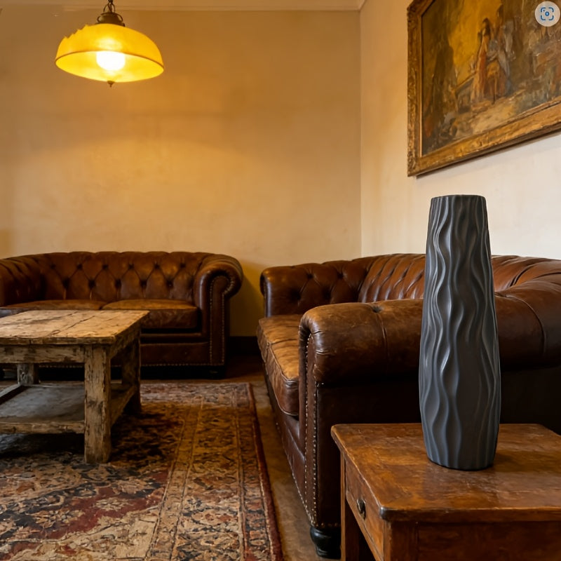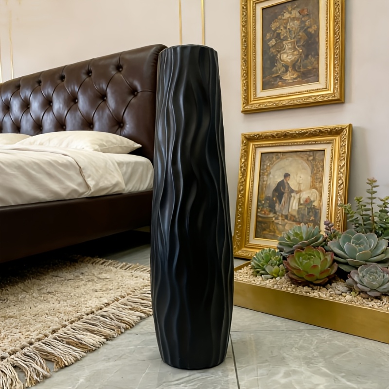 Large Durable Plastic Floor/cabinet Vase, 22.83inch High: Features a European Minimalist Modern Geometric Textured Cylinder Design, Available in White, Black, and Gray. Suitable for Hydroponic and Dried Flower Arrangements, L