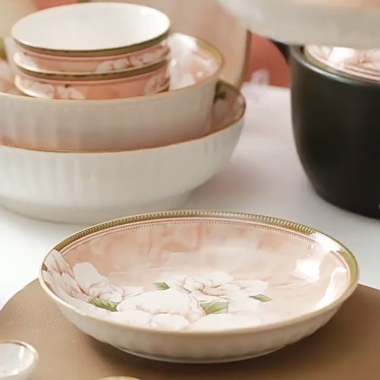 Camellia Pattern Ceramic Dinnerware Set – Light Luxury Tableware (16 / 33 / 43 Pieces)