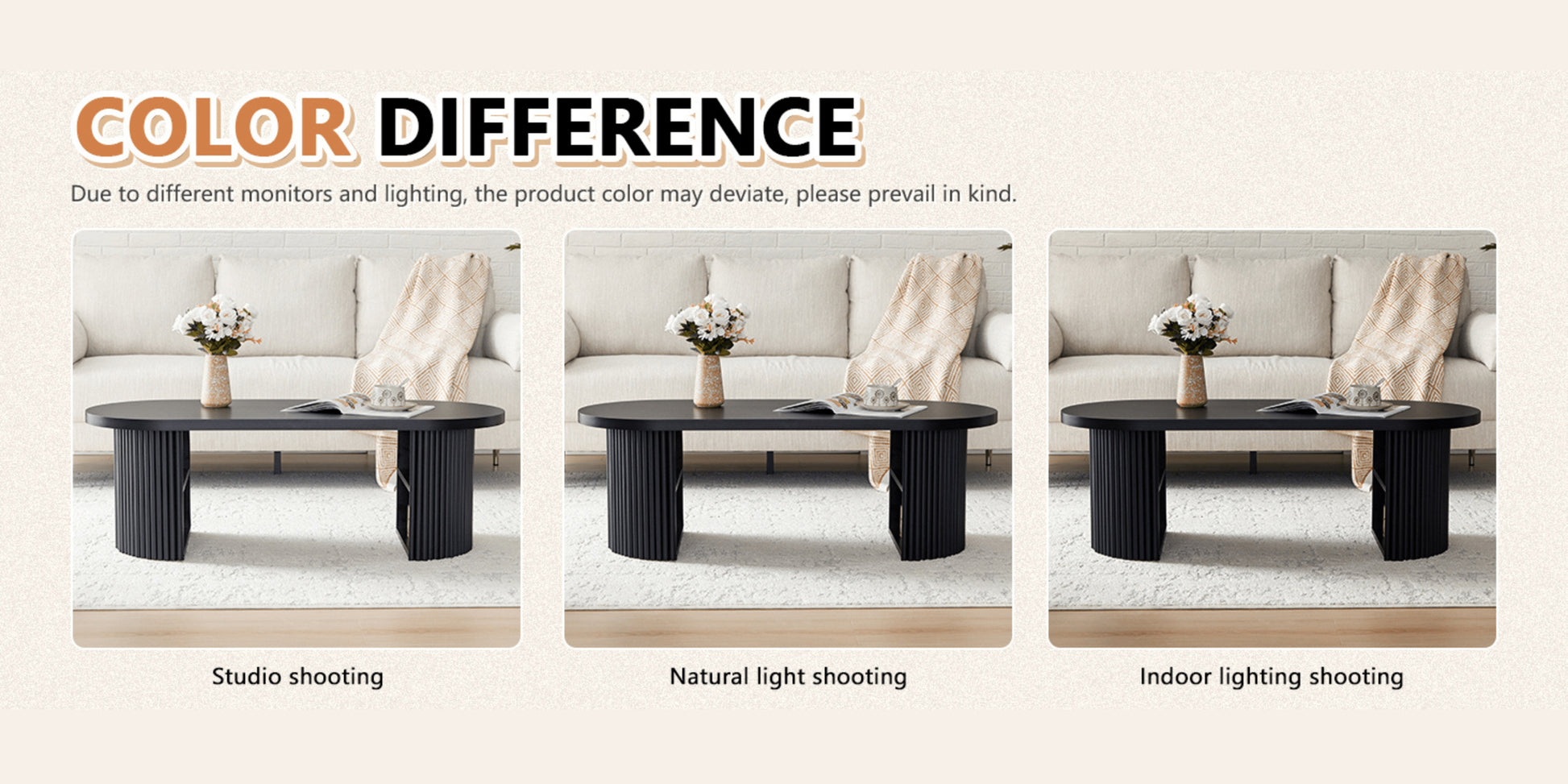 - Oval tabletop design: Soft shape that’s easy to style and move around