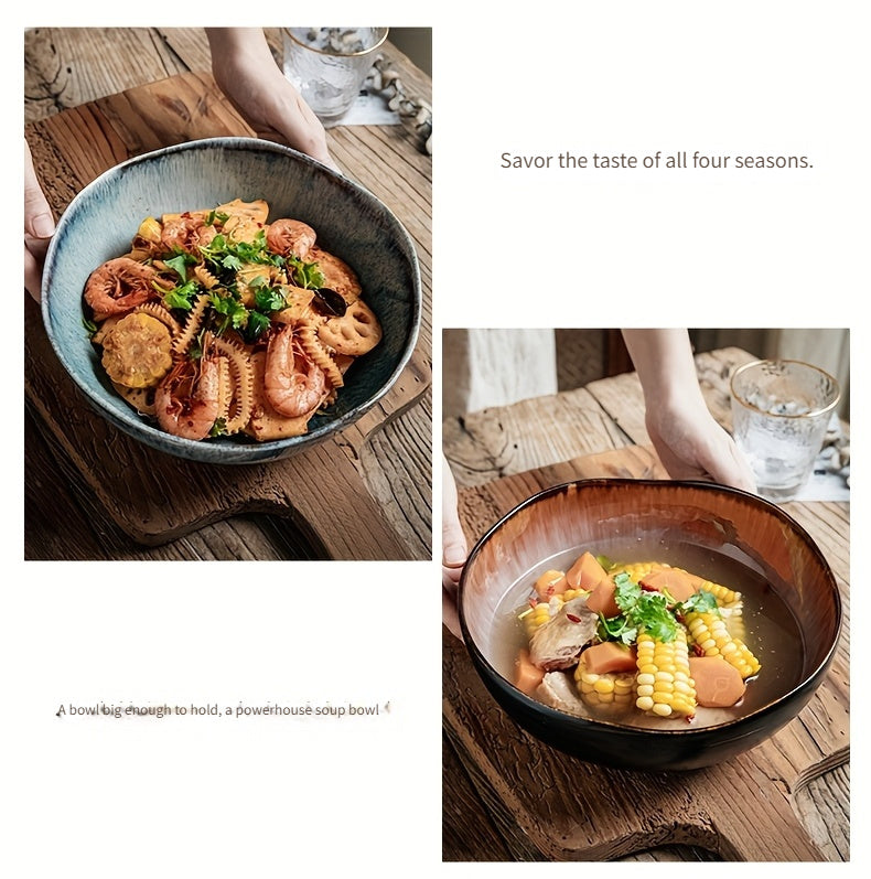 Elevate your dining presentation with this restaurant-grade ceramic ramen bowl, finished in a striking azure flame glaze and designed with a refined asymmetrical form. Extra thick and built for durability, it’s perfect for serving ramen, noodles, soups, and rich broths with a premium, modern plating aesthetic.