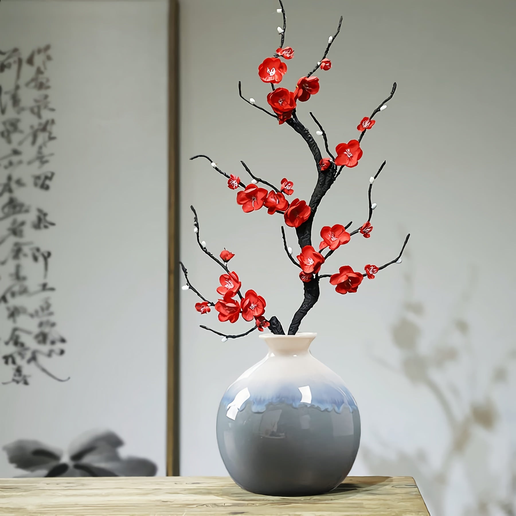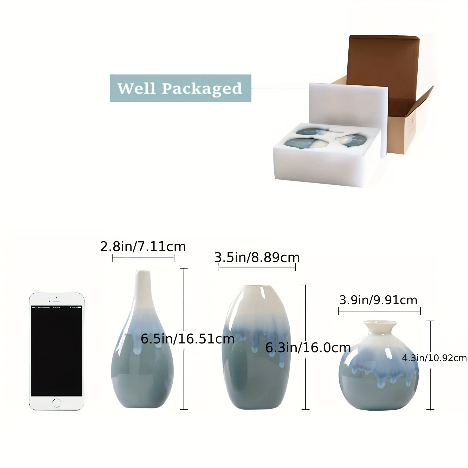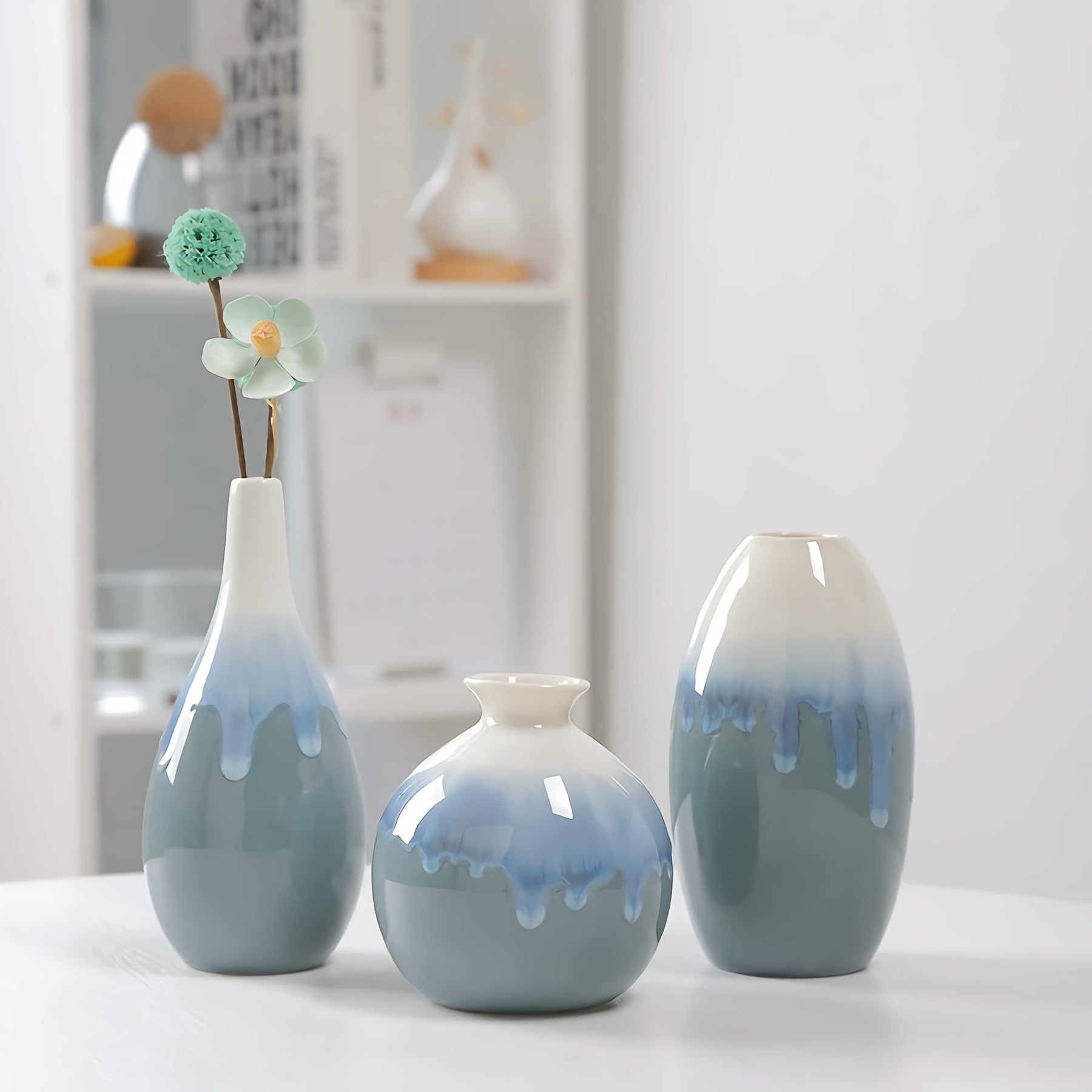 Set of 3 Ceramic Vases - Modern Boho Minimalist Decor for Living Room, Shelf, Table, Bookshelf, Mantel, and Entryway - Ink Painting Pattern