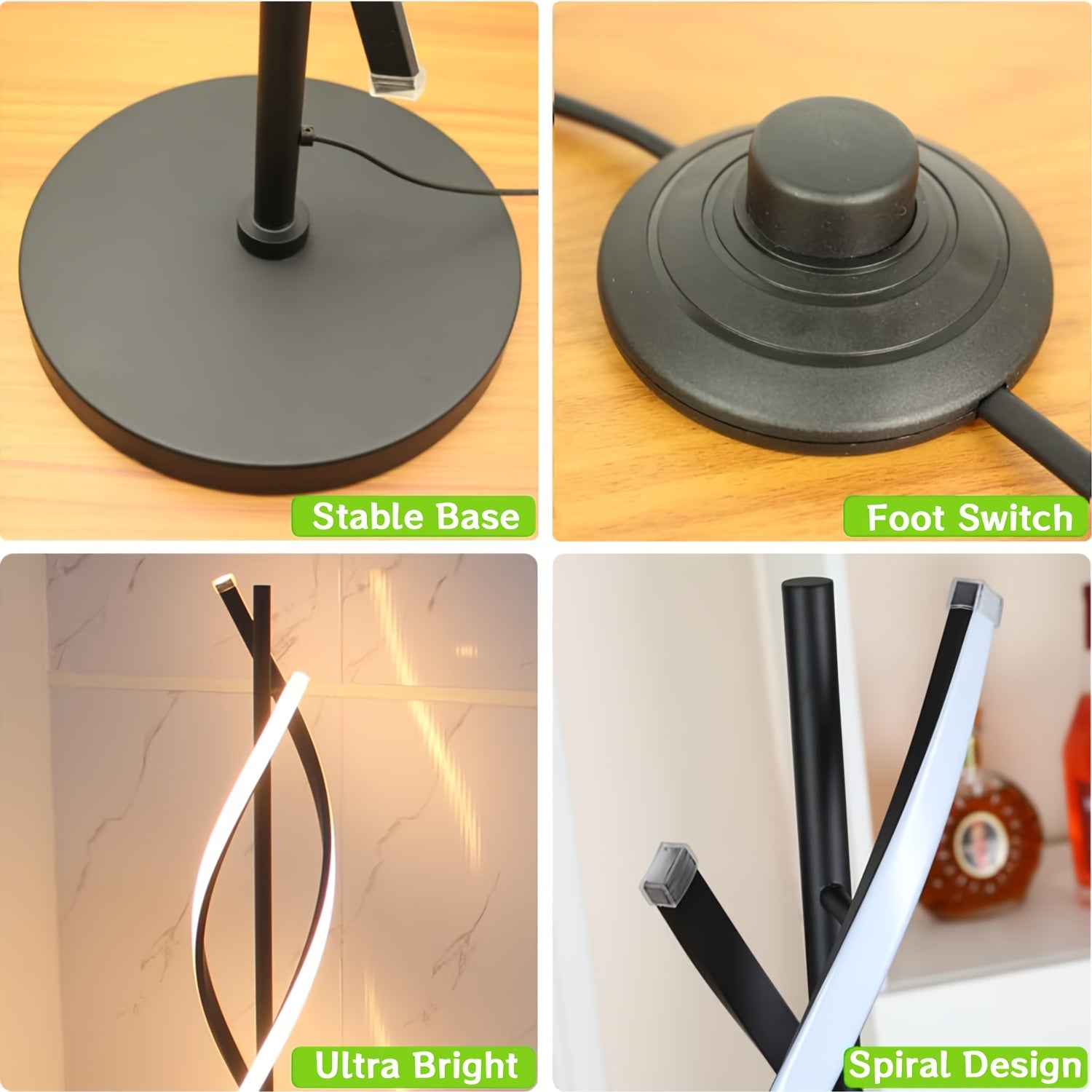 Spiral LED Floor Lamps for Living Room, Dimmable Floor Lamp, Modern Standing Lamp with Remote And Foot Switch, 60in Tall Lamp for Bedroom Office Dining Room Black White, 48W