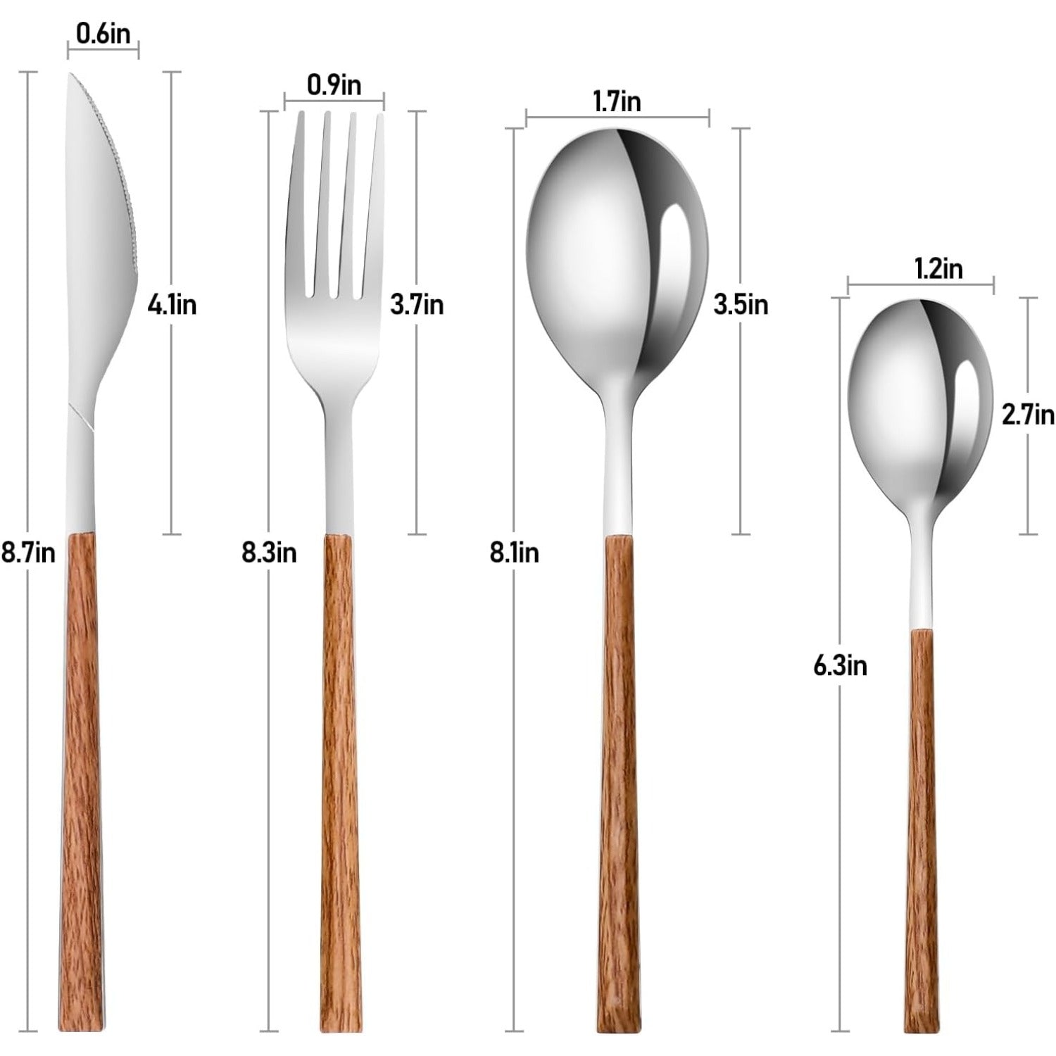 Stainless Steel Flatware Set for 4, Mirror Polished and Dishwasher Safe, Cutlery Utensils Set with Simulated Wooden Handle Include Knives Forks Spoons Service for 4(Silvery), Cutlery Sets for Dining