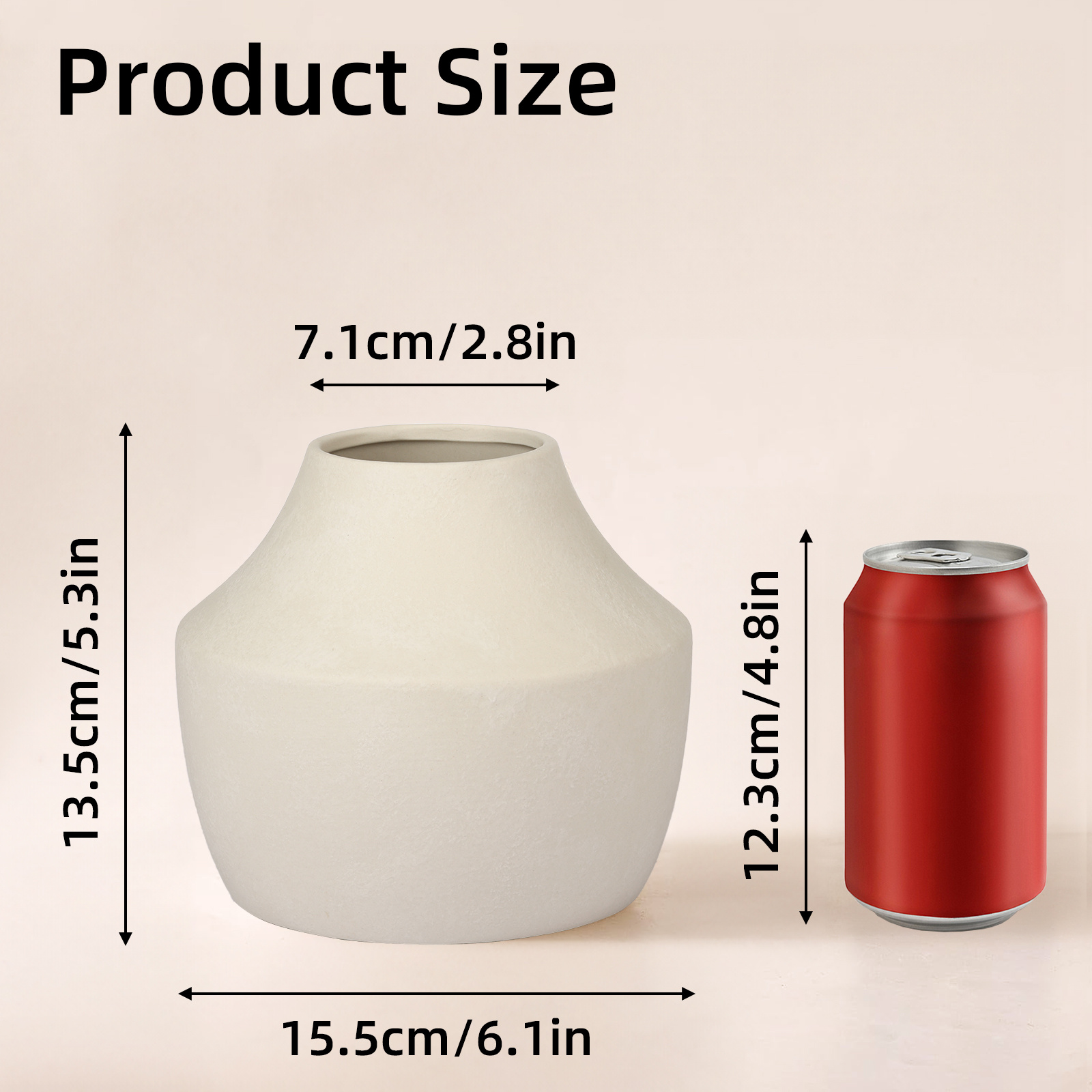 WHONLINE Ceramic Flower Vase 5.3 inch Farmhouse Rustic Vase Decorative Pottery Terracotta Vases for Home Decor Table Mantle Fireplace Living Room Bathroom Wedding Centerpiece
